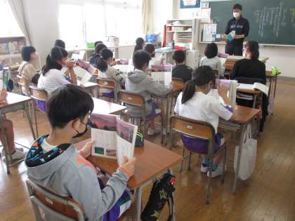国語科「春の空」の学習です。枕草子の冒頭を声に出して読み、描かれている様子を想像しました。