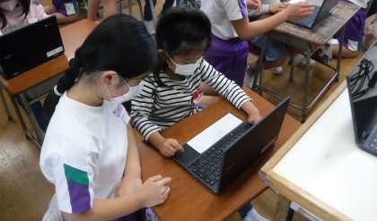 今日から、クロームブックを使った学習を始めました。今日は、クロームブックの持ち運び方、電源の付け方消し方、クラスルームへの入り方等を学びました。