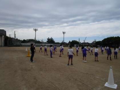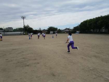 運動会のリレーの練習を始めました。各団で、バトンの受け渡しの練習に力が入っていました。
