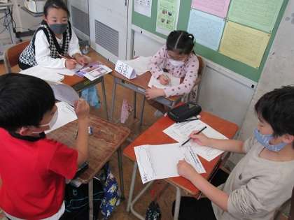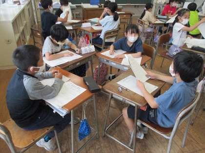 総合的な学習では環境について学習を進めています。GW中に調べたり、身の回りの人にインタビューをしたりして分かったことを共有しました。司会を中心に話を聞き合い、熱心にメモをとる様子が見られました。