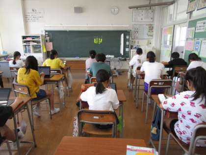 クロームブックでドリルの問題に取り組みました。タッチペンを使って、分数のかけ算と割り算をすらすら解いていました。