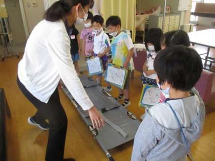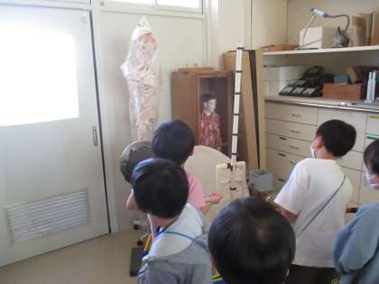 保健室、理科室、図工室へ行きました。養護教諭に質問したり、理科準備室に入って教材を見たりしました。