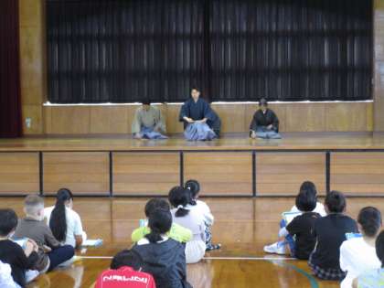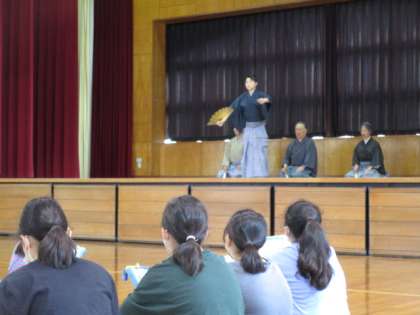山本能楽堂の方から、能楽について教えていただきました。能「羽衣」を見て、衣装や動きについて気になったことを熱心に質問していました。