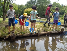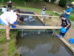 2日目は、ザリガニ釣りをしました。さきいかを餌に、ザリガニゲットです。