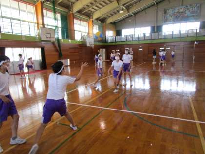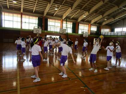 今日は体育はボールを使って、体の柔らかさや巧みな動きを高める運動を行いました。いろいろな動きの中で、子供たちは上手にボール投げたり転がしたりしていました。