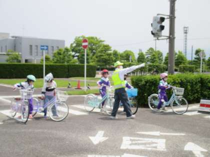 実際に自転車に乗ったり、お話を聞いたりしながら、自転車に乗るときの交通ルールについて学習しました。