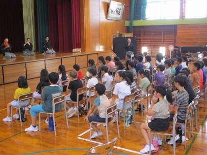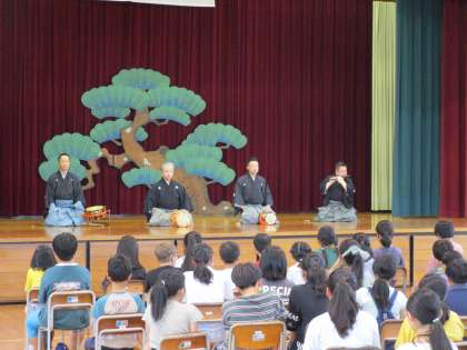 山本能楽堂の方々にお越し頂き、子供たちは柿山伏・羽衣を鑑賞しました。