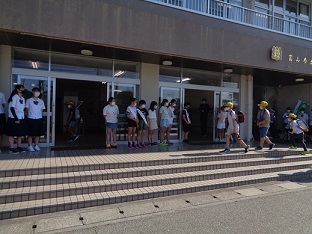 今朝は、中学校の生徒と本校運営委員会が一緒にあいさつ運動を行いました。萩っ子はたくさんの人からあいさつしてもらい、にこにこしながらあいさつを返していました。
