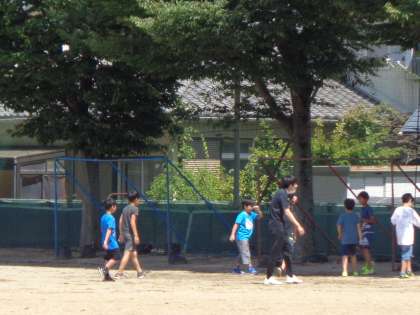 この日は、6年生が宿泊で不在、1・2年生はプール前後の準備のため、3年生・4年生・5年生がグラウンドで遊んでいました。
