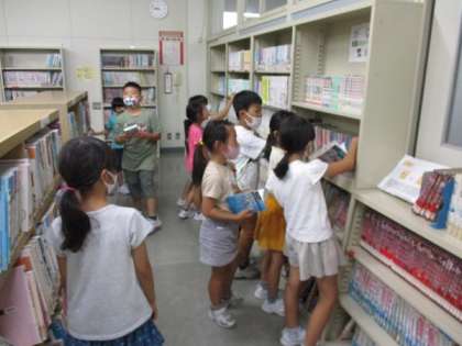 夏休み用の図書を借りるために、図書室に行きました。自分の読んでみたい本をじっくり選んでいました。夏休みも読書に取り組んでほしいと思います。