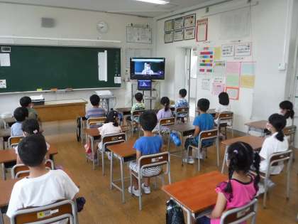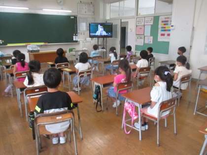 今日は、1学期終業式でした。終業式は、リモートで行いましたが、校長先生のお話を背筋を伸ばしてしっかりと聞いていました。また、2年生と6年生の「1学期がんばったこと発表」も目をつないで聞き、最後には大きな拍手をしていました。