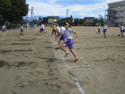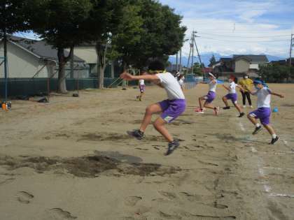 走り幅跳びの練習に取り組んでいます。踏み切る足や助走距離を確かめながら、体全体を使った跳躍がたくさん見られました。