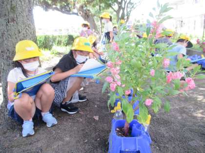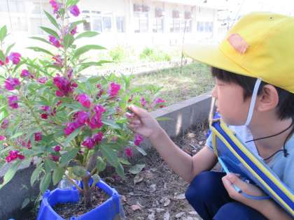 3年生は理科の学習でホウセンカの観察をしました。茎の太さに驚く声や、つぼみを発見して喜ぶ声が聞こえてきました。