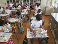 図画工作科では、絵の具を組み合わせて混ぜると、どのような色になるのか調べました。思い思いの色を組み合わせて、楽しく活動に取り組んでいました。
