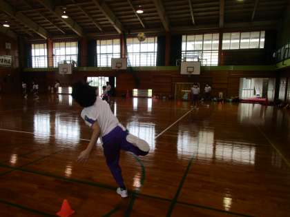 体育科では、「ハンドボール」の学習を進めています。初めてのハンドボールですが、楽しみながら、思い切り体を動かしています。