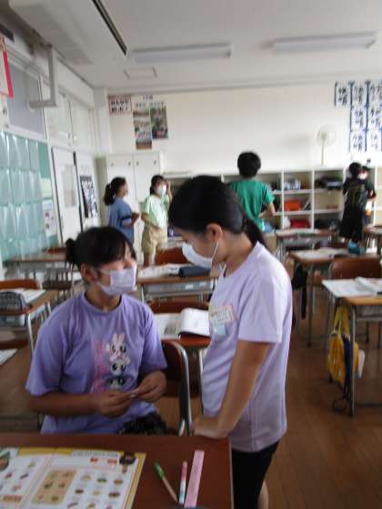 夏休みのことを友達に話しました。「行った」「見た」「食べた」こと等を過去形を使って話すことができるようになりました。