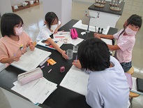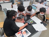 理科では、蒸発した水をもとのすがたにもどすことはできるのか調べています。冷やしたビーカーの様子を観察し、水滴がついたりくもったりすることに気付いていました。