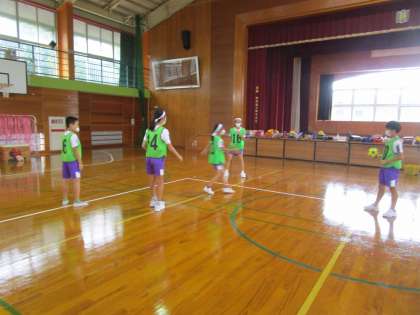 色団毎に作戦を立てて練習をしています。2組との試合が楽しみです。