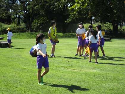今日は、秋晴れのさわやかな天気の下、全校で岩瀬スポーツ公園まで行きました。6年生は、自分たちが考えた遊びを1〜5年生が楽しんでいる様子を見て嬉しそうでした。「疲れたけど、楽しかった」と、とても満足そうでした。