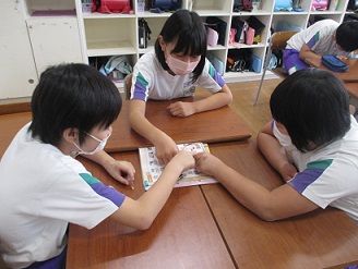 外国語科では、道を聞いたり、案内したりする学習を始めました。今日は、町にある建物の名前をゲームをしながら覚えました。