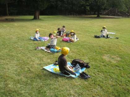 待ちに待ったお昼は、おうちの方に作ってもらった弁当をおいしそうに食べていました。お弁当を食べ終わると、友達と元気いっぱい遊びました。
