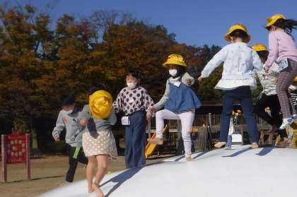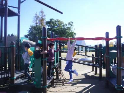 秋をたっぷり見付けた後は、遊具を使って遊びました。短い時間だったけれど、思い切り体を動かして遊び、満足そうにしていました。