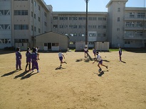 体育科では、晴れた日にはグラウンドでハンドベースボールを行っています。ルールについても自分たちで話し合いながら、仲間と協力して取り組んでいます。