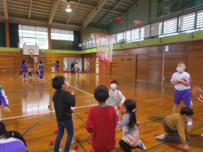今日は2組が1年生と交流しました。1年生と一緒に楽しめる遊びとして考えた「玉入れ」と「ころがしドッジボール」を思い切り楽しんでいました。