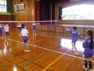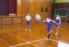 体育科では、キャッチバレーボールを行っています。今日は初めてネットを張ってみました。ネットがあるだけでぐっと試合に近づいたように感じると同時に、難易度も上がりました。これから班で教え合いながら練習していきます。
