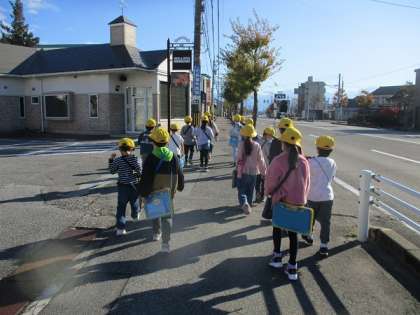 今日は萩浦校区にある店や公共施設にたんけんに行きました。安全に気を付けて、歩いて目的地まで向かいました。
