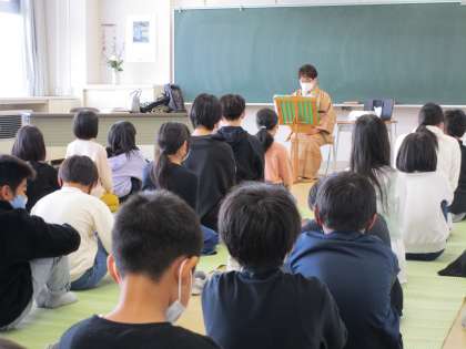 朗読教室がありました。子供たちは1学期に学習した「カレーライス」「竹取物語」などを聴いて、授業で感じたこととはまた異なる情景や登場人物の心情を想像することができていました。