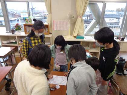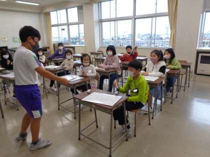 今日は、2学期最後のなかよし班活動の日でした。どの子も「ごちそうさま」をしたらすぐに活動場所に向かい、班長が来るのをにこにこ笑顔で待っています。