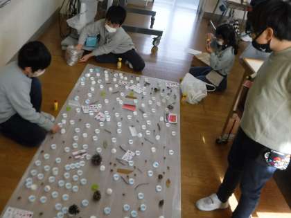 「どんぐりごまの対戦場をつくろう」「みんなでどんぐりころころをしたいね」など、声をかけあい、工夫しながらつくっています。