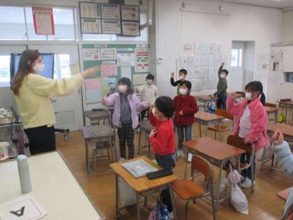 今日は、英語で挨拶したり、じゃんけんをしたりして楽しみました。また、アルファベットの発音も先生の真似をしながら、一生懸命練習していました。