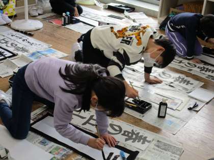 練習の成果はいかに 書初大会