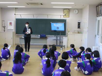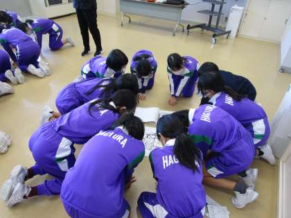 心肺蘇生法とAEDの使い方について学びました。子供たちは真剣な表情で話を聞き、どのようなリズムで胸骨圧迫をするか体験しました。