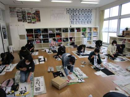 6年生にとっては、小学校最後の書き初め大会でした。どの子も手本をよく見て真剣な態度で書いていました。