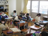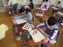 図画工作科では、今週から版画を彫り始めました。久々に使う彫刻刀に緊張しながら、彫る楽しさを味わっていました。