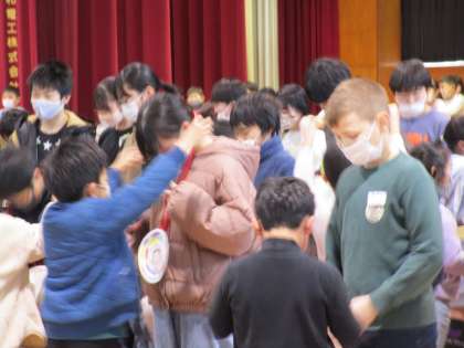 昨日は、卒業を祝う会でした。1年生からメダルのプレゼントをもらった6年生は、とても嬉しそうでした。2年生から5年生の出し物もどれも心のこもった発表で、見ていて胸が熱くなりました。6年生は振り返りで「元気が出た」「中学校でもがんばれそう」「とても楽しい集会だった」と発表していました。集会後に、素敵な集会を企画してくれた5年生に感謝の気持ちを伝える様子がたくさん見られました。
