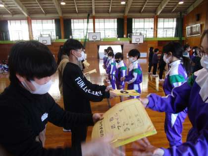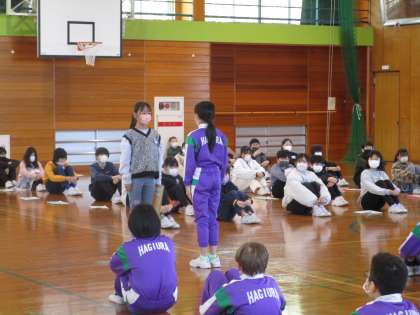 今日は、4,5,6年生が体育館に集まり、引継ぎ式を行いました。6年生から5年生に委員会となかよし班のファイルを渡しました。ファイルには、1年間の活動についてと6年生の思いが書かれています。