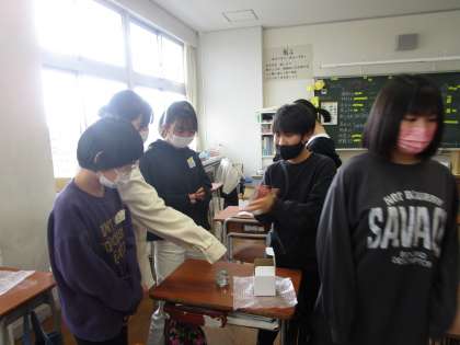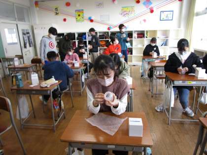 先月、ガラス工房で卒業記念作品として制作したガラスウエイトが届きました。みんな楽しみに待っていたのでとても喜んでいました。お互いの作品を見て「きれい」「いいね」などと感想を言い合っていました。