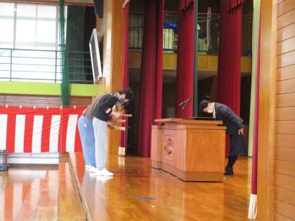 小学校最後の修了式の様子です。6年間よくがんばりました。
