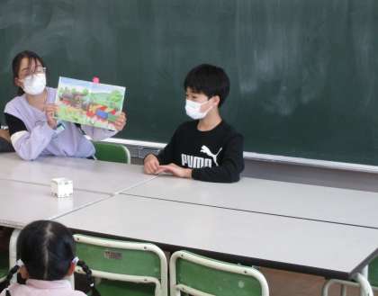 1年生に図書の貸し出し方法を教えたり、本を読み聞かせたりしました。とても楽しかったようで、また少し1年生と仲良くなれたことを喜んでいました。