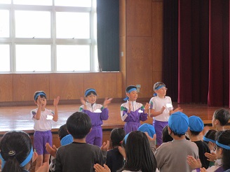 今日は、団員全員が集まって、応援合戦の練習をしました。戸惑うこともありましたが、一生懸命練習する下学年に励まされてやり遂げることができました。