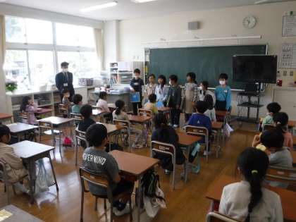 2年生は、1年生にそれぞれの教室の使い方や学校のルールを伝えようと、グループに分かれて練習を重ねてきました。