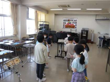 音楽室では、たくさんの楽器の紹介をしたり、クイズを出したりしました。図書室では、図書室の使い方やおすすめの本を紹介しました。