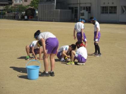 今日はリレーの練習後、グラウンドの環境整備を行いました。運動会に向けて、萩っ子みんながけがをしないように、一生懸命に石を拾っていました。