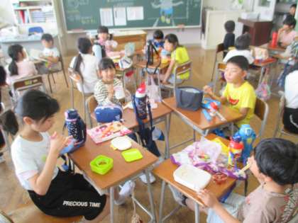 運動会が終わった後、「楽しかった」「負けたけどがんばったからよし」などと感想が聞かれました。どの競技も一生懸命に頑張る姿がかっこよかったです。特に、学年リレーでは、これまでの練習の成果を発揮し、どの団も最高記録を出すことができました。運動会後、お弁当をみんな嬉しそうに食べていました。