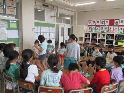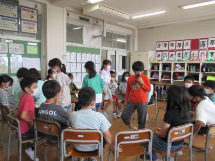 お楽しみ係が休み時間にみんなで遊ぶ企画をしてくれました。今日は、フルーツバスケットで盛り上がりました。
