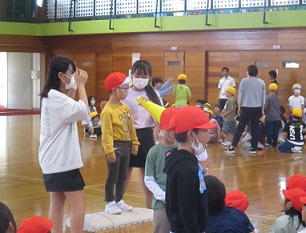 運営委員会が企画し、集会を開きました。1年生が自己紹介をして、みんなとじゃんけんを楽しむという遊びをしました。元気いっぱいに名前を伝えている1年生がすてきでした。運営委員の子供たちも、集会の運営をがんばりました。
